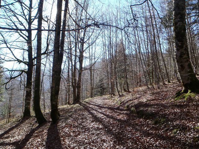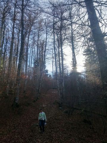 Emprendemos entonces el último tramo de vuelta, ya todo cuesta abajo, con unas pendientes bastante inclinadas. Los arboles estaban ya desnudos y las hojas cubrían todo el sendero, por lo que el descenso fue complicado ya que el suelo resbalaba y no se veía si ponías el pie sobre tierra o en un hueco. Pero sin duda, impresionantemente bonito.